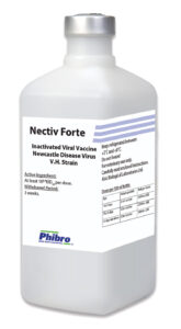 Nectiv Forte (New Castle Disease Inactivated, highly concentrated, lentogenic V.H. cloned stain in oil emulsion Protected against Geno Type IIV)